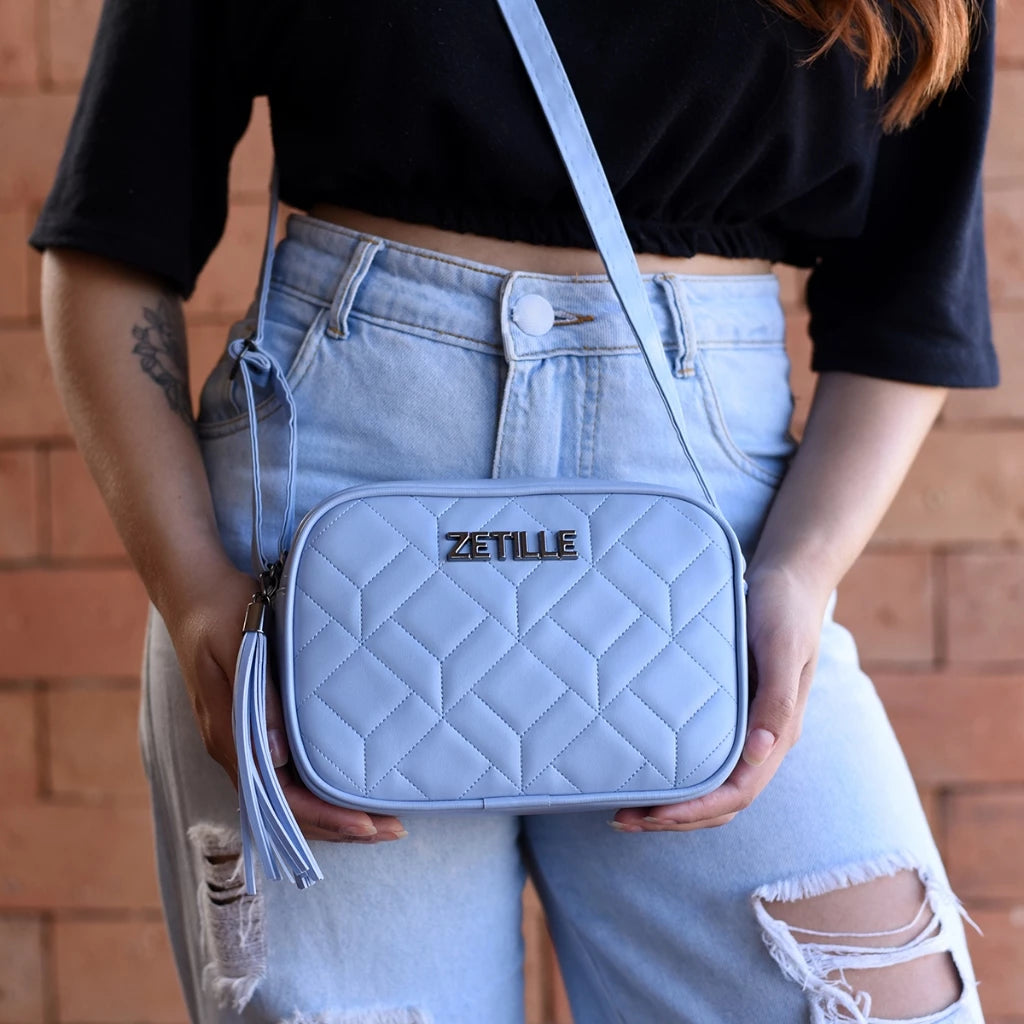 Bolsa Feminia Zetille, bordada, em material sintético, forro de nylon, com bolso interno, fechamento em zíper, reforçada, e acompanha alça de mão e transversal.