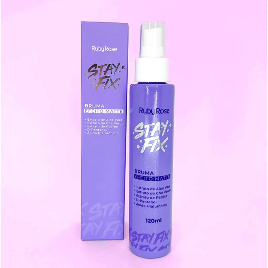 A Bruma Matte Stay Fix prolonga a maquiagem enquanto promove firmeza e efeito mate à pele. Os extratos de Pepino, Chá Verde e Aloe Vera limpam e tonificam a pele, além de estimularem a elasticidade, enquanto o Ácido Hialurônico e o D-Pantenol nutrem e hidratam a pele sem deixar oleosa.