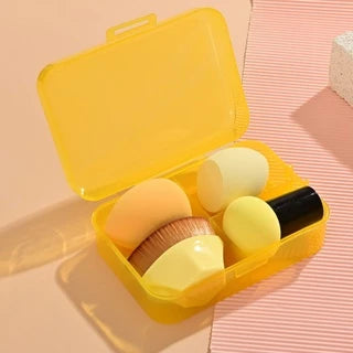 O kit de pincéis para base contém, 1 escova cabeça tridimensional de grande área, com cerdas ricas, material macio de alta qualidade, 1 esponja com punho de plástico traceless, e 2 esponjas no modelo coxinha.