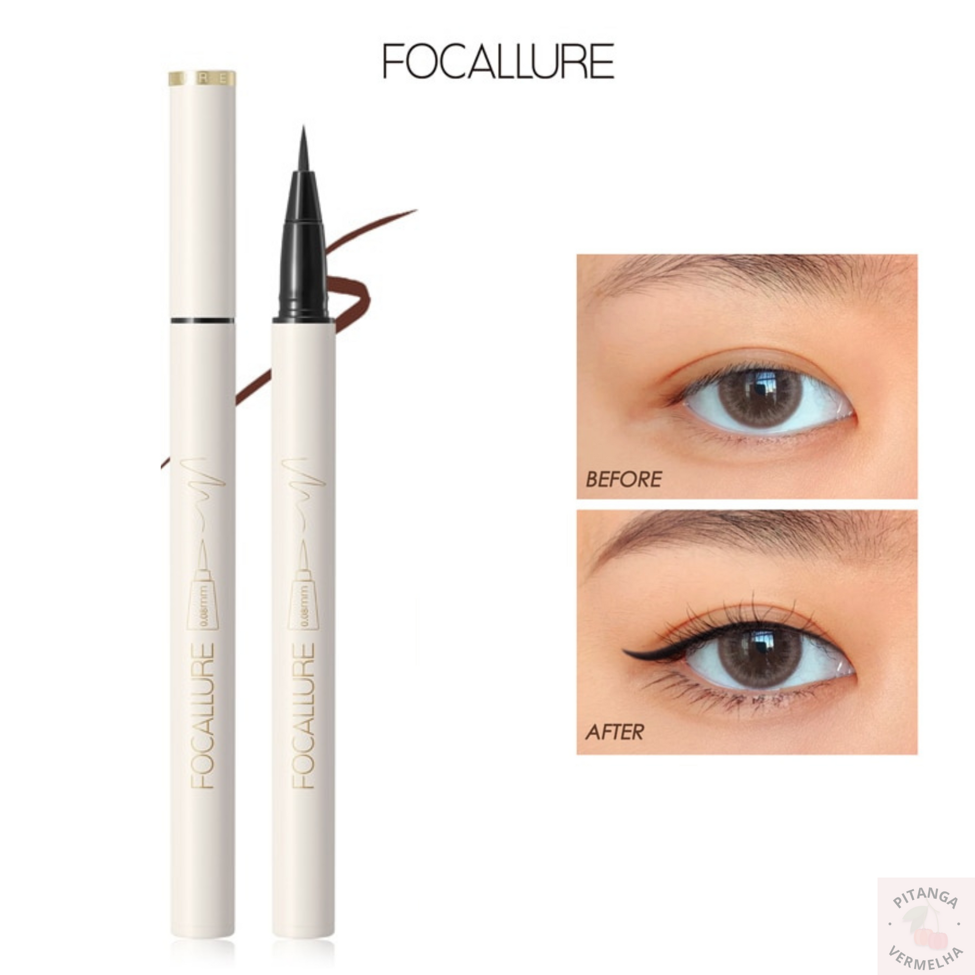 O novo delineador líquido de secagem rápida, ponta ultrafina de Focallure vem com uma escova de toque macio e ponta de 0,08 mm. Você pode facilmente desenhar linhas muito finas para o delineado perfeito, mesmo para iniciantes e o melhor de tudo, que ele ainda é a prova d'agua.