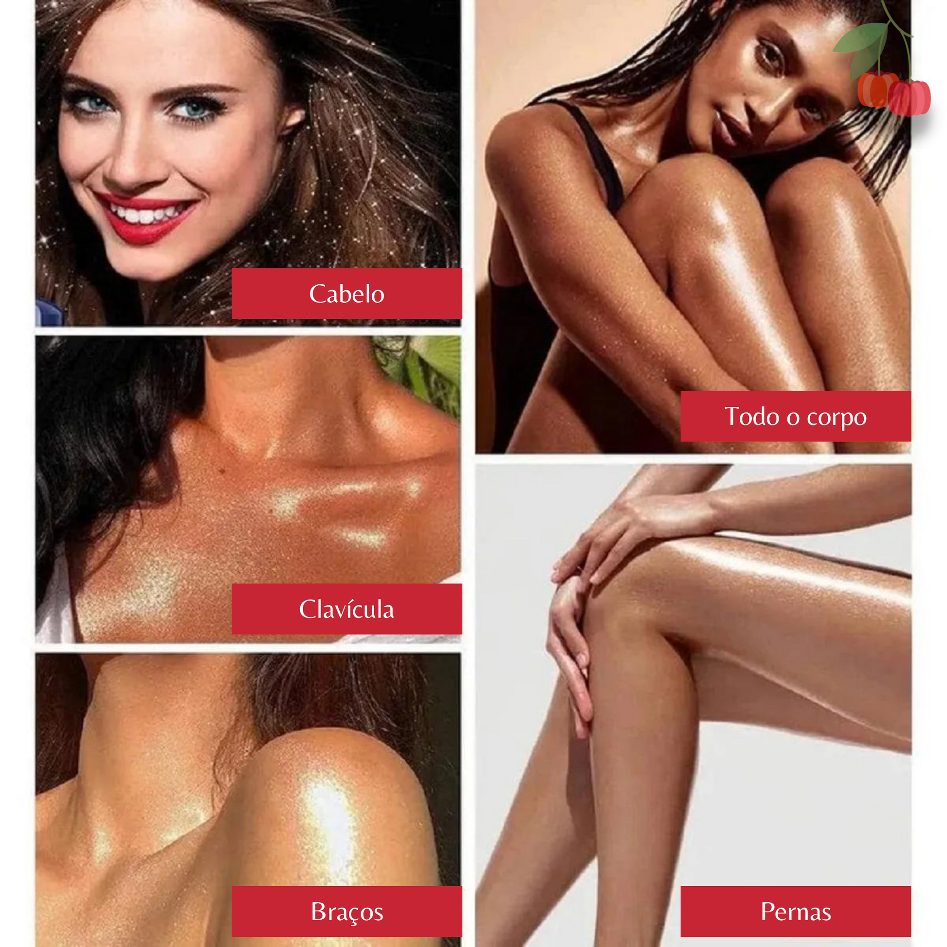 O iluminador Shimmer Gloss, é um produto versátil que adiciona brilho e luminosidade a pele, realçando e destacando os pontos do seu rosto. Seu efeito "glow" proporciona um brilho sútil ou intenso, depende da preferência, se adaptando a diversos estilos e ocasiões. Com efeito duradouro, ele pode ser usado também, nos braços, pernas e cabelo. Experimente esse brilho e transforme sua maquiagem.