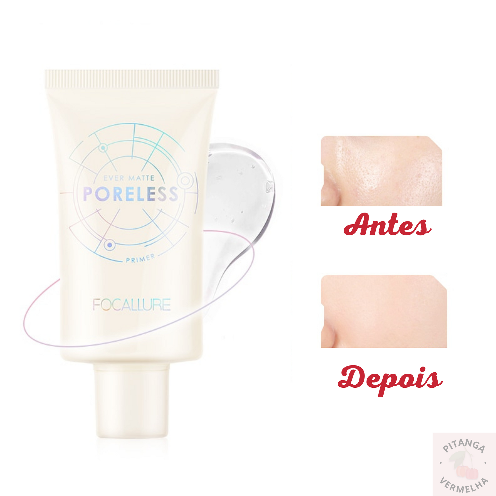 O Primer facial Focallure é enriquecido com vitamina e óleo de soja, onde ele suaviza linhas finas, minimiza imperfeições da pele, reduz a oleosidade e minimiza os poros. Com textura gel, é fácil de aplicar, com absorção rápida, forma um filme na pele e deixando-a com efeito matte, de longa duração.