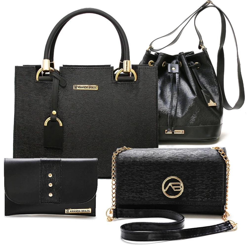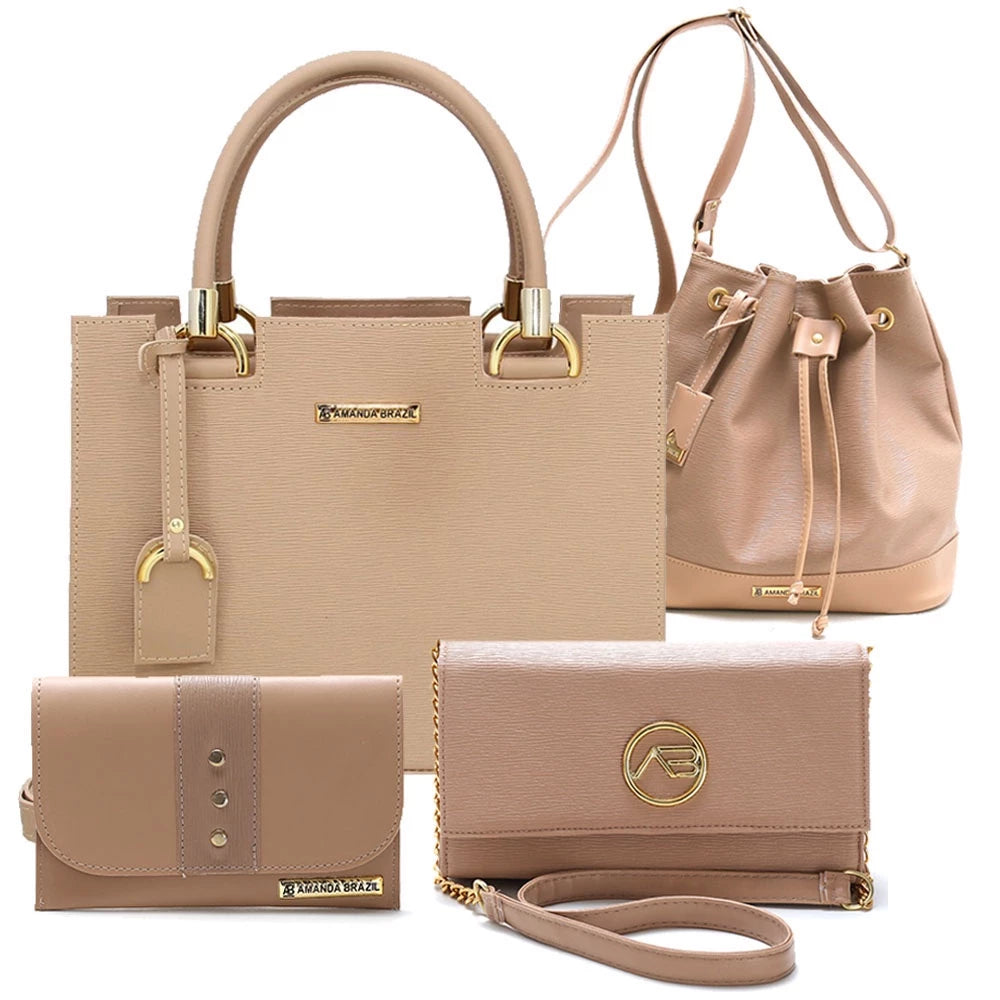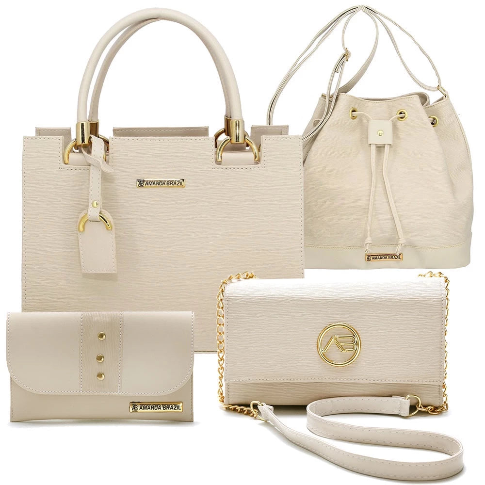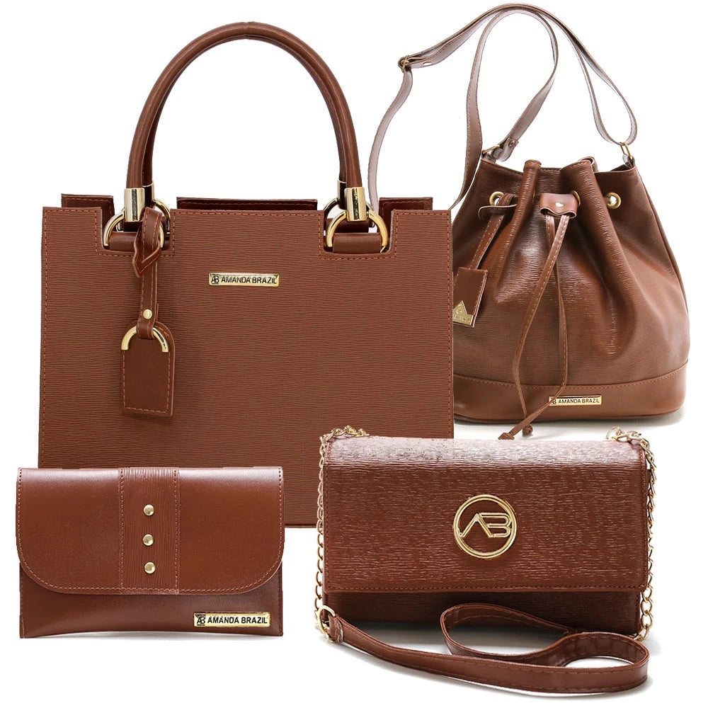 Kit Bolsa Castelo + Bolsa Saco + Carteira + Bolsa Corrente Amanda Brazil