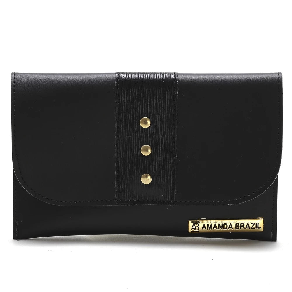A carteira comporta cédulas, documentos e celular. Não possui repartições e nem porta moedas. Fechamento em botão. Não possui bolso externo. Altura fechada: 12 cm, Altura aberta: 21 cm, Profundidade: 10,5 cm, Largura frontal: 18 cm.