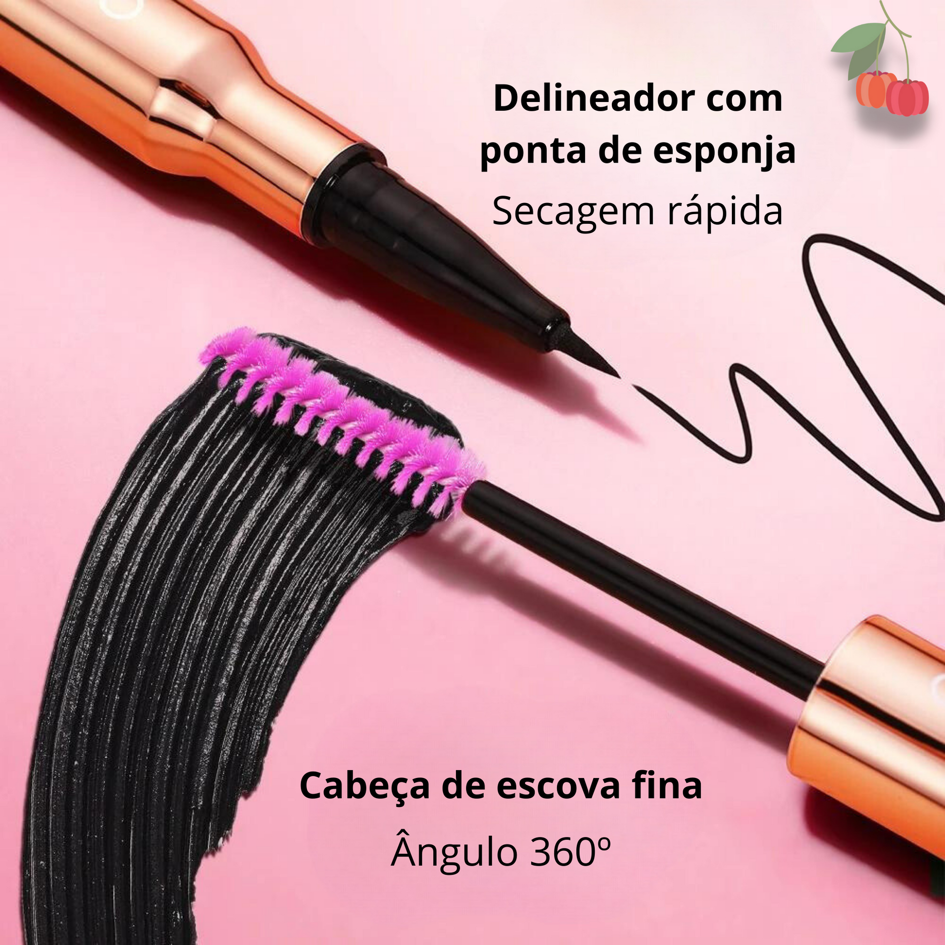 A cabeça de escova em forma de ampulheta exclusiva, agarra os cílios na raiz para levantar, engrossar e alongar, deixando soltos e sem flocos, apenas volume e aparência de cílios mais longos.