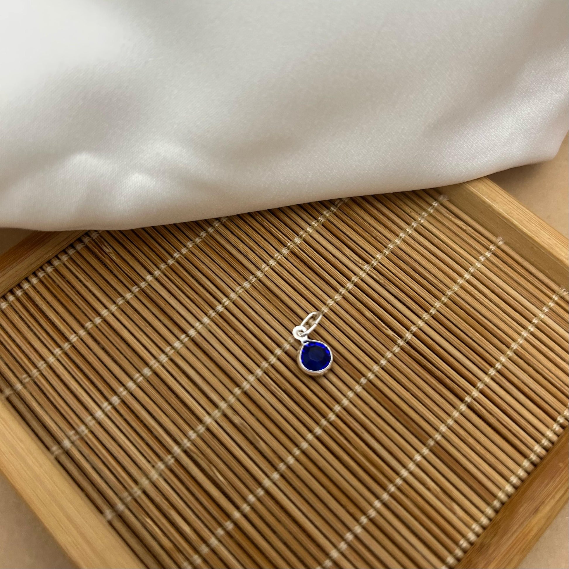 Pingente de prata 925 com zircônia azul (5 x 5mm), redondo.
