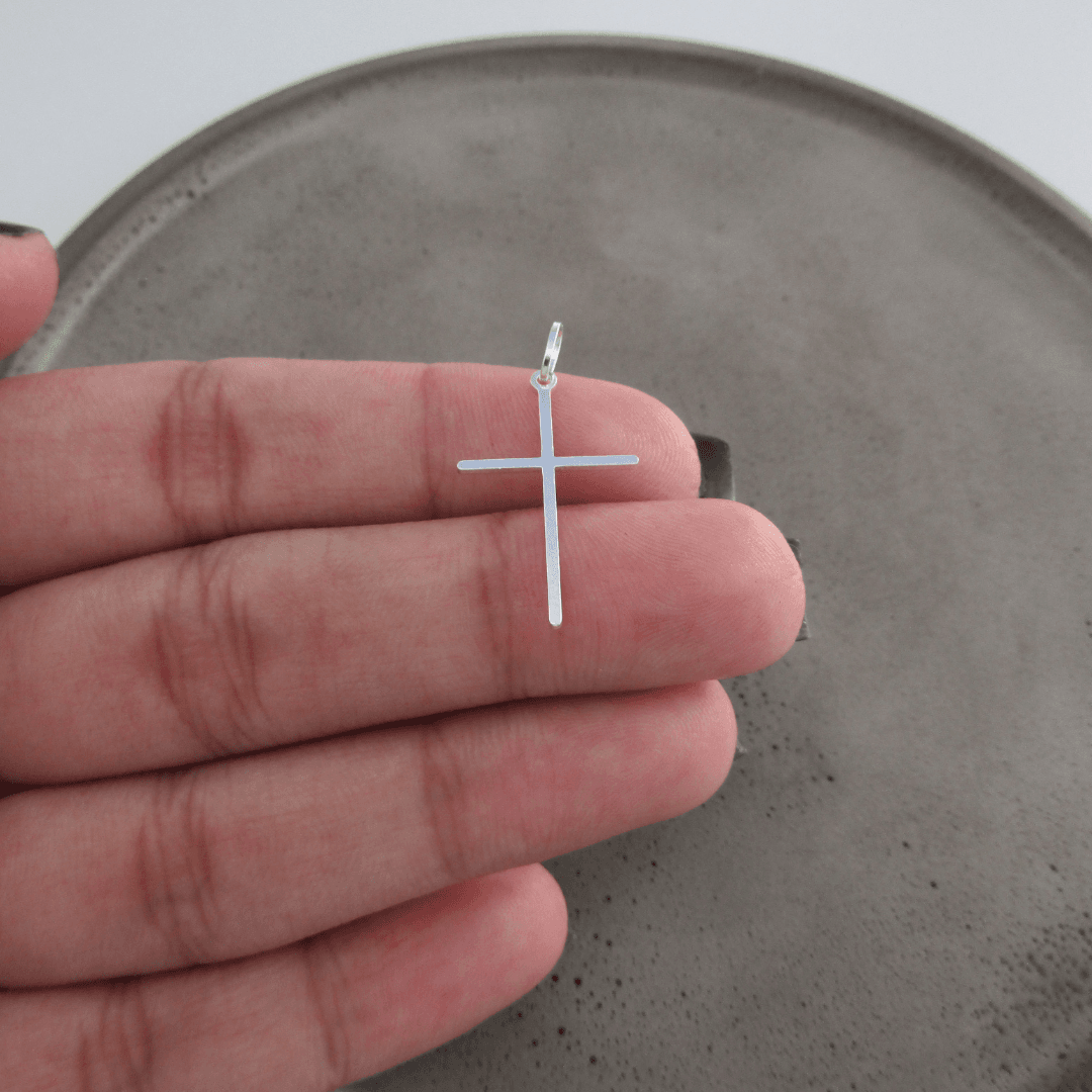 Cruz - Altura: 2.4cm x Largura: 1.4cm Espessura: 0.1cm Argola Oval - 0.7cm