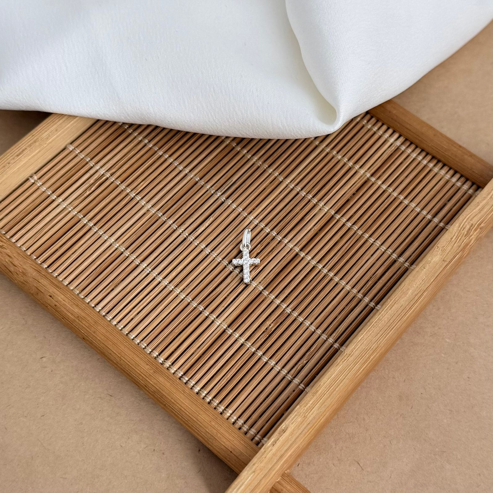 PINGENTE CRUZ PEQUENA CRAVEJADA ARGOLA OVAL