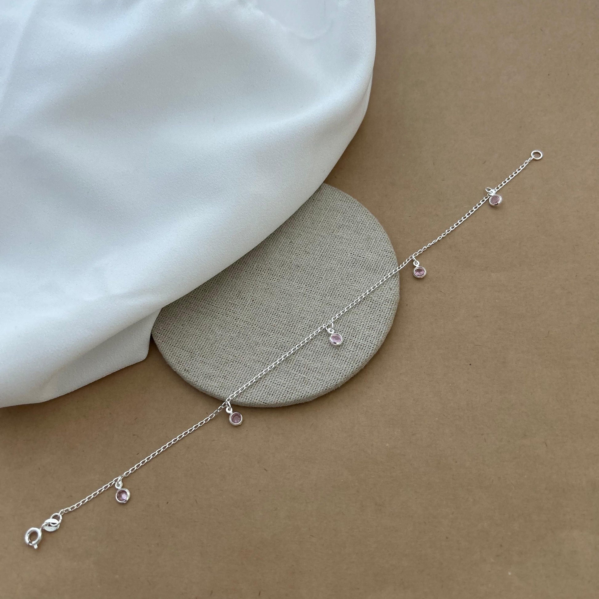 Tornozeleira em prata 925, 5 zircônias azul de 4 x 4mm.